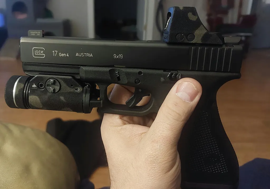 This wrap installed easily on my tlr1hl, looks great and will protect my light, but the reason I gave only 3 stars is it’s extremely hard to take in and out of holster, and after just 3 days the wrap is beginning to lose the adhesive and starting to come off in areas where the light meets the holster I find myself having to try and adjust the wrap back into place every time I unholster my firearm, also the part of the wrap that goes over the dome of the light never went all the way around even after pushing together, after a few minutes the wrap separates again.